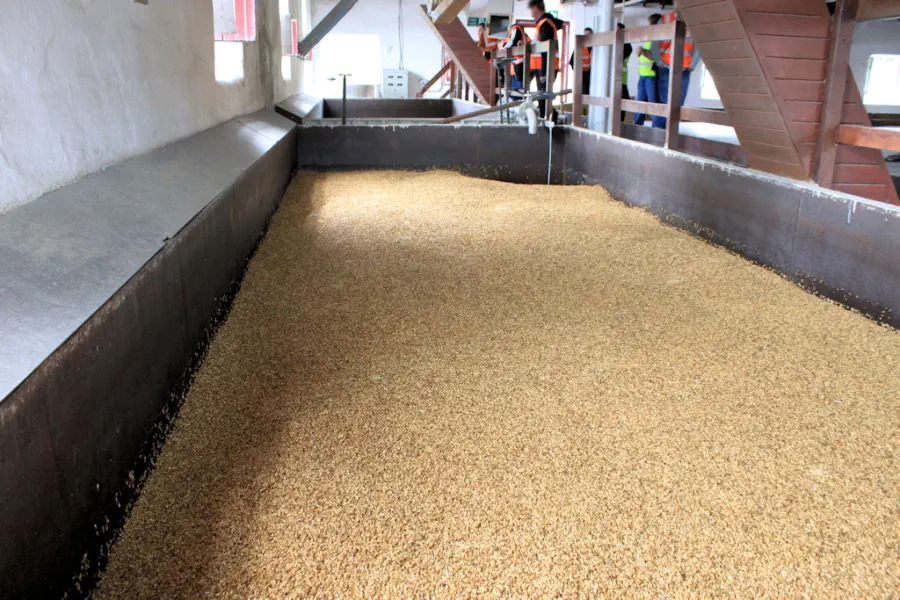 und anschließend zum Keimen auf dem Malzboden ausgebreitet. Bis zum